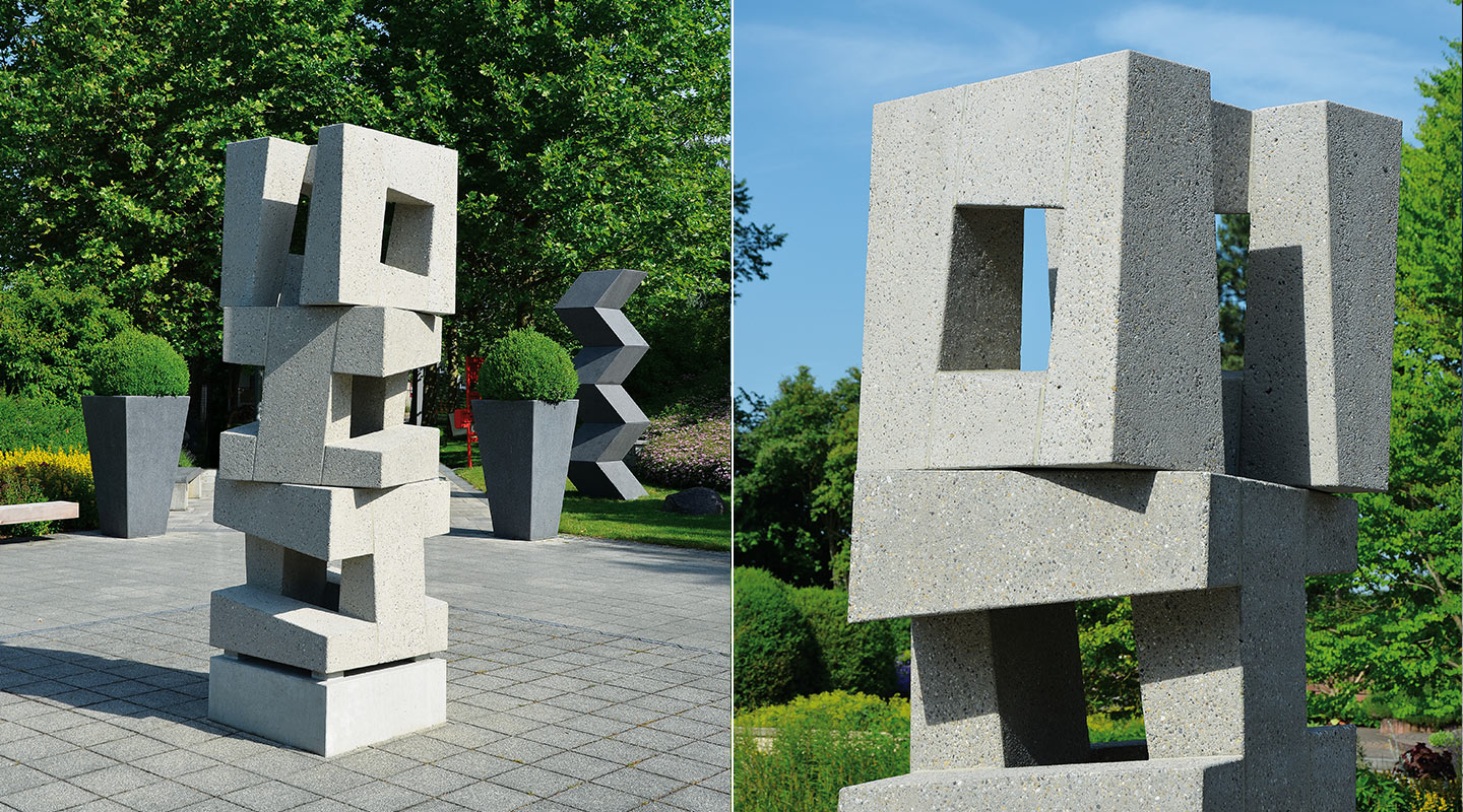 OMI Riesterers konstruktive Gebilde bestehen zumeist aus Holz, Eisen, Aluminium und Bronze. Für ARTon hat Riesterer seine Skulptur in die Höhe getrieben. Drei Kuben aus Beton wurden zu einem über zwei Meter hohen Turm übereinander geschichtet. Die einzelnen Würfel präsentieren sich nicht als Vollform, sondern bestehen aus sechs erkennbar voneinander getrennten Einzelteilen, die den Blick des Betrachters durch verschiedene Schnittebenen in die Tiefe führen. So entsteht ein Wechselspiel zwischen der Masse und dem freien Raum, der selbst zum gestalterischen Element wird. Mehr noch als seine Arbeiten aus Holz atmen diese mit Beton umbauten Räume Architektur und lenken den Blick des Betrachters auf die bildnerischen Möglichkeiten der Raumdarstellung und Raumwahrnehmung.